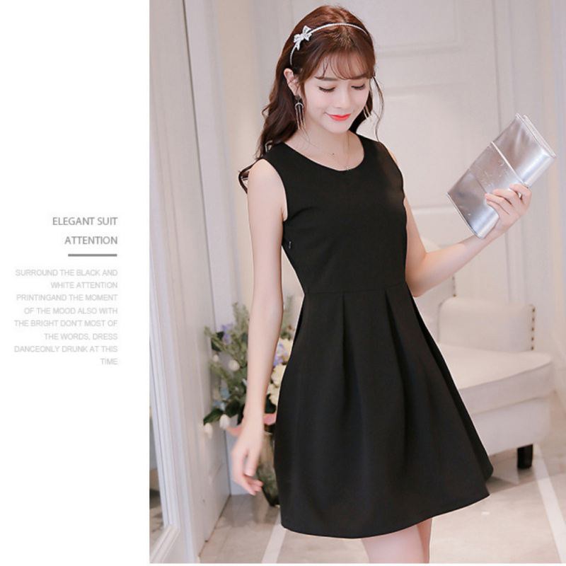 Penjual dress korea Dress Tanpa Lengan Model Slim Elegan, Warna Polos, Gaya Korea