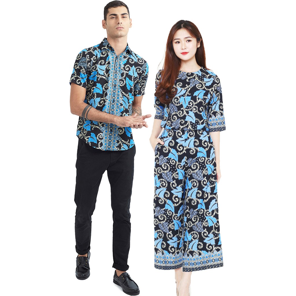 Gallery Produk Batik Flike Store Couple Set Pria dan Wanita Blue Wayang