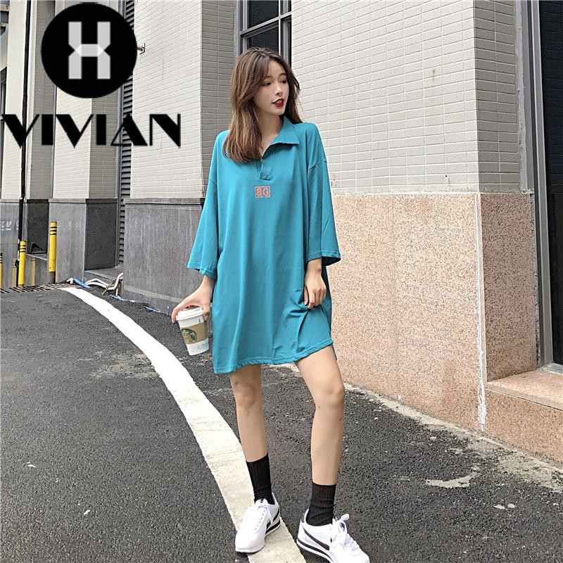 Produk Yang direkomendasikan terkait ?VIVIAN? Dress Kaos Mini Wanita Kerah Lipat V-Neck Lengan 3/4 Longgar Gaya Korea - Putih/Hijau Tosca