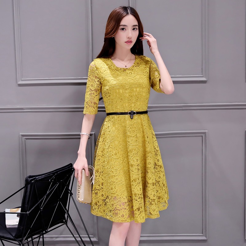 Seller Produk Dress Midi Casual Gaya Korea Warna Pink Hitam Bahan Lace untuk Wanita