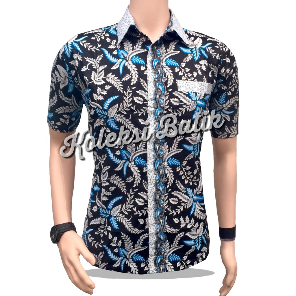Penjual batik pria KEMEJA BATIK PRIA MODERN LENGAN PENDEK BLARAK BIRU FASHION PRIA