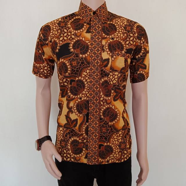 Promo DiskonRisna Batik HRB026 kenongo kemeja hem pendek padi batam tas M L XL MURAH KEREN bati pria wajik biru ayo segera dibeli