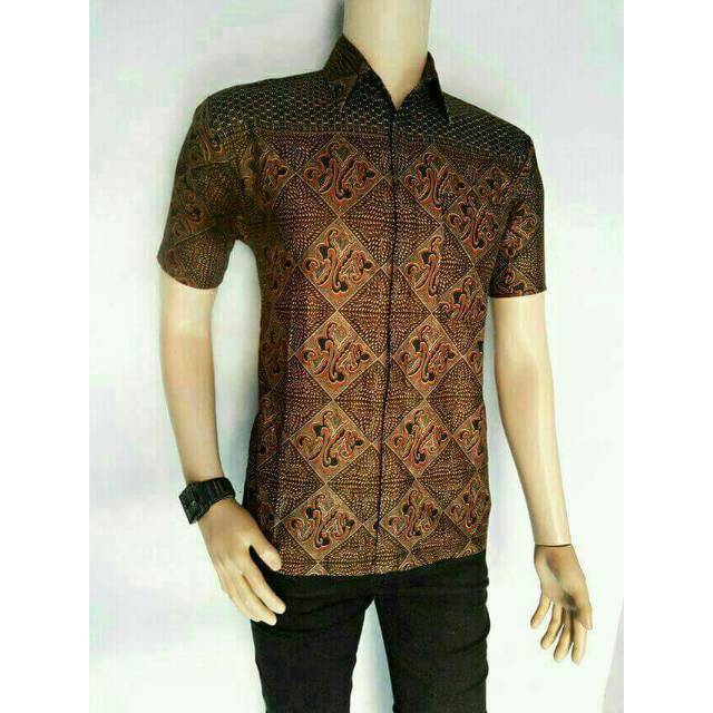 Promo MenarikRisna Batik HRB026 kenongo kemeja hem pendek padi Pekalongan M L XL KEREN batik pria wajik biru sebaiknya diamankan