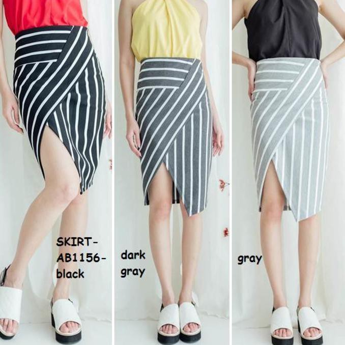 Gallery [ Fashion ] Style Rok Skirt Dress Bahan Kantor Kerja Stripe Garis Salur Korea Import Fashion HQ